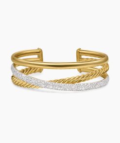 David Yurman Women’s Pavé Crossover Three Row Cuff Bracelet | Diamond