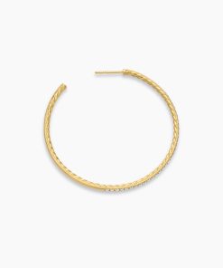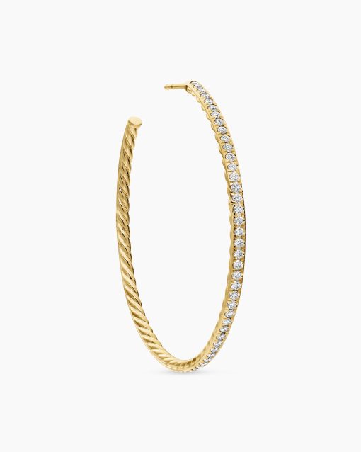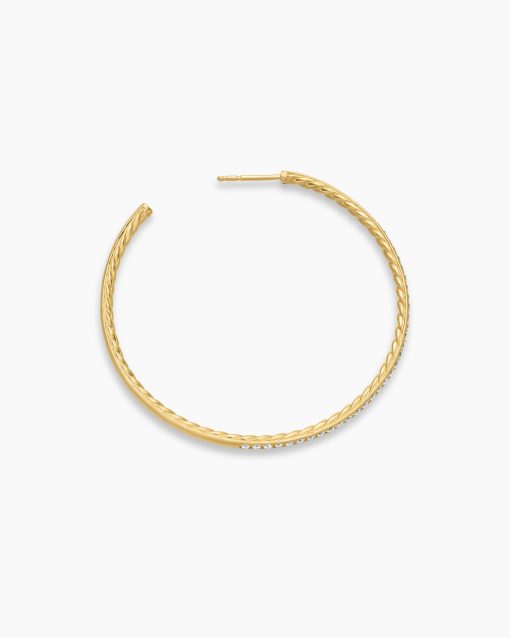 In Sculpted Cable, David Yurman transforms his signature design motif into a carved form. The effect is an entrancing wavelike pattern that retains the dimensional look of Cable’s original helix. 18-karat yellow goldPavé diamonds, 0.52 total carat weightHoop, 25.4 x 2.4mm