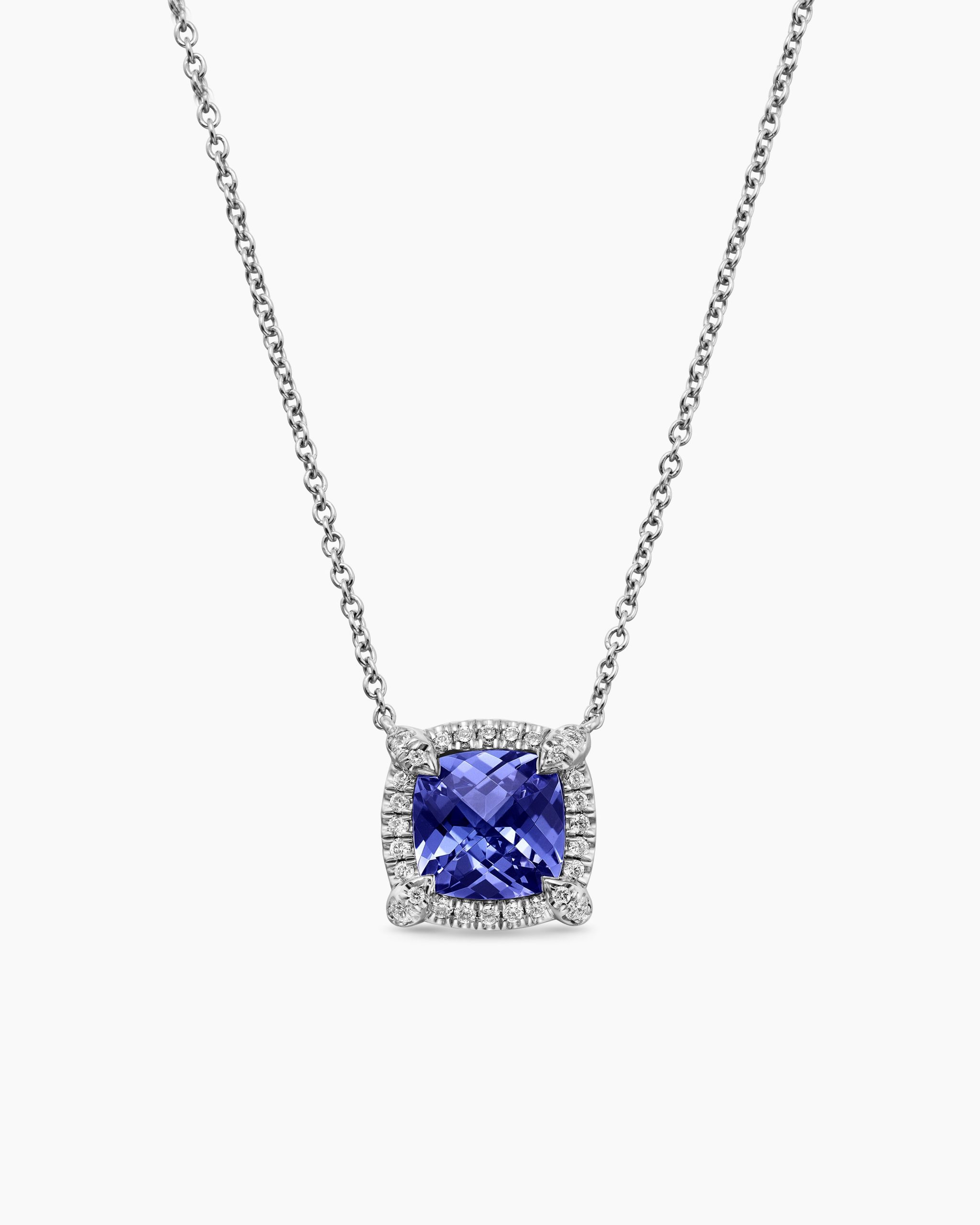The Châtelaine® Collection is a perfect fusion of David and Sybil Yurman’s combined art—the marriage of a sculptor and a painter—form and color. 18-karat white goldTanzanite, 1.80 total carat weightStone, 7mmPavé diamonds, 0.12 total carat weightAdjustable length, 16-18inPendant, 9.8mmChain, 1.1mmLobster clasp