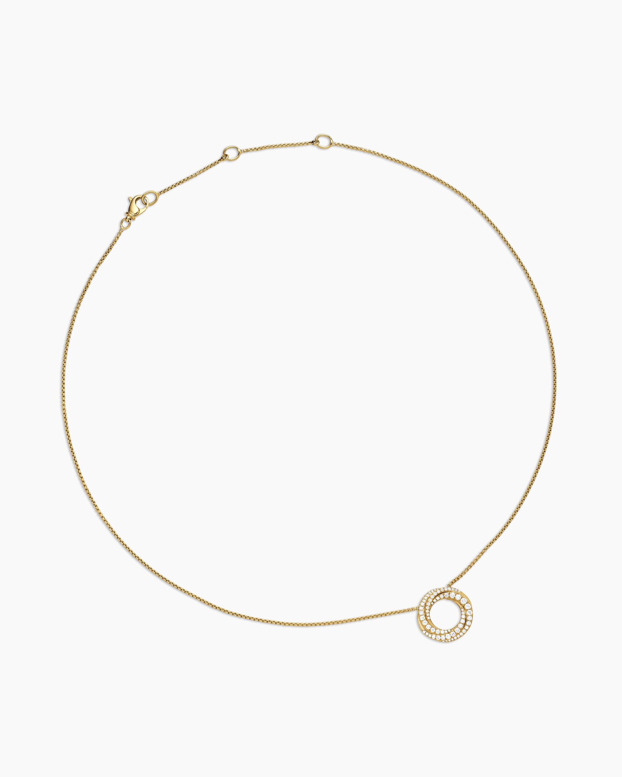 The Crossover Collection® explores the rhythmic weaving of line to create form and movement. Using a dynamic range of smooth and cabled cords, the individual strands are meticulously entwined. 18-karat yellow goldPavé diamonds, 0.34 total carat weightPendant, 15.5mmLobster clasp