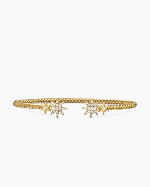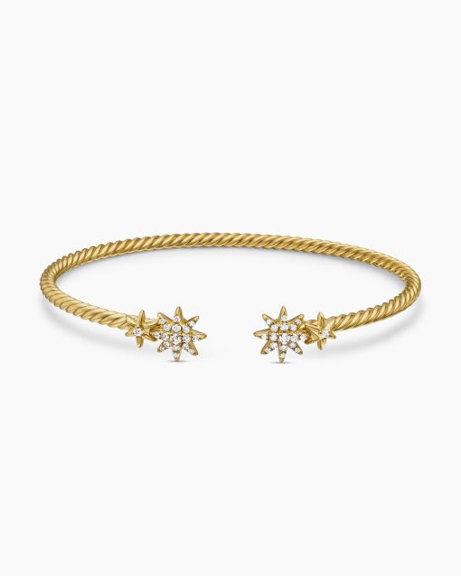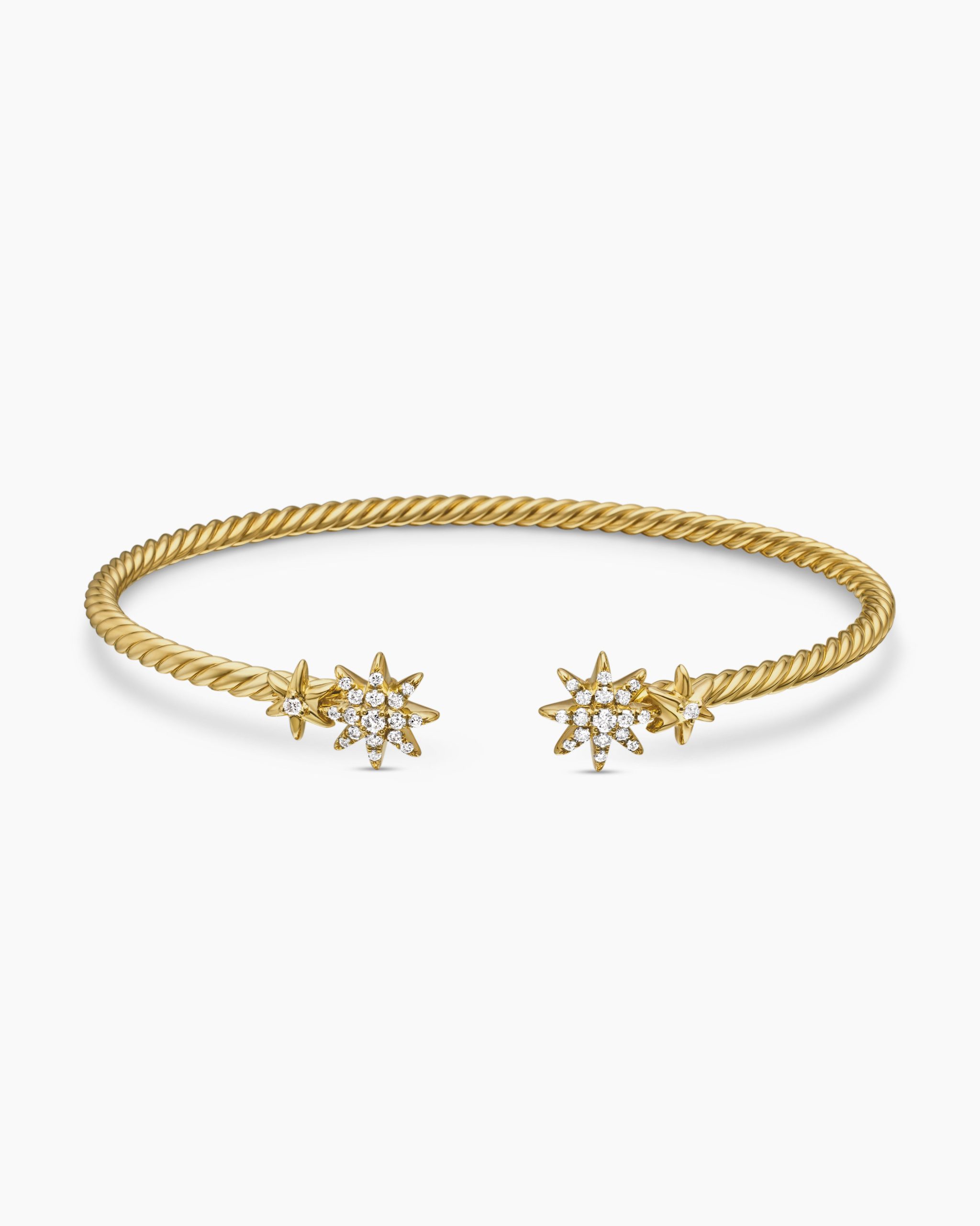 Starburst was born from David and Sybil Yurman’s experience watching fireworks illuminate the Paris night sky. The magical bursts of light greatly moved Sybil, inspiring David to create designs of brilliant star motifs. 18-karat yellow goldPavé diamonds, 0.24 total carat weightBracelet, 2.6mmCablespira® is a patented DY construction that is highly flexible and exceptionally comfortable to wear.