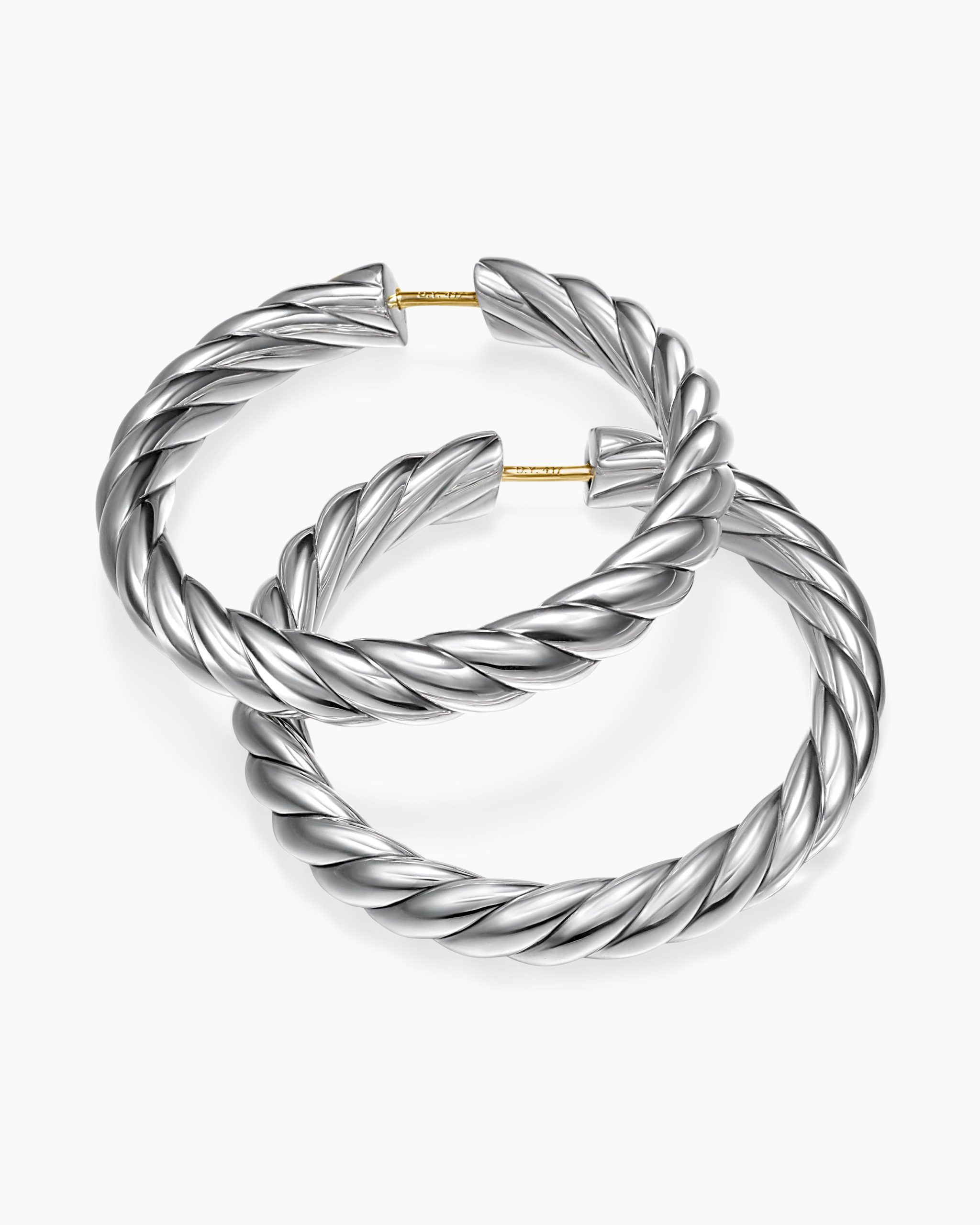 Inspired by his love of architecture and bas-relief sculpture, Evan Yurman designed this modern form by deconstructing Cable—the house’s signature motif—to its essence. Each timeless design is a wearable work of art. Precious metals are meticulously carved with mesmerizing wavelike patterns that dramatically catch the light. Elegant curves highlight the sensuality of the body.Sterling silverEarrings, 38 x 5.4mm