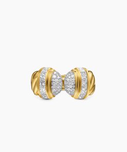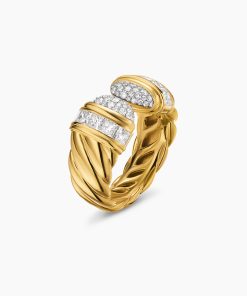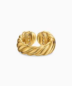Inspired by his love of architecture and bas-relief sculpture, Evan Yurman designed this modern form by deconstructing Cable—the house’s signature motif—to its essence. Each design is a wearable work of art; precious metals are meticulously carved with exquisite wavelike patterns that dramatically catch the light. Elegant curves highlight the sensuality of the body, with pavé-set diamonds for a statement of added brilliance.18-karat yellow goldDiamonds, 1.57 total carat weightRing, 12.4mm