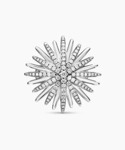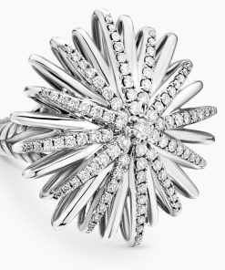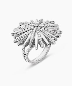 Starburst was born from David and Sybil Yurman’s experience watching fireworks illuminate the Paris night sky. The magical bursts of light greatly moved Sybil, inspiring David to create designs of brilliant star motifs. Sterling silverPavé diamonds, 0.85 total carat weightRing, 28mmThis item can be engraved. Please contact customer care for more information.