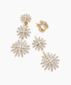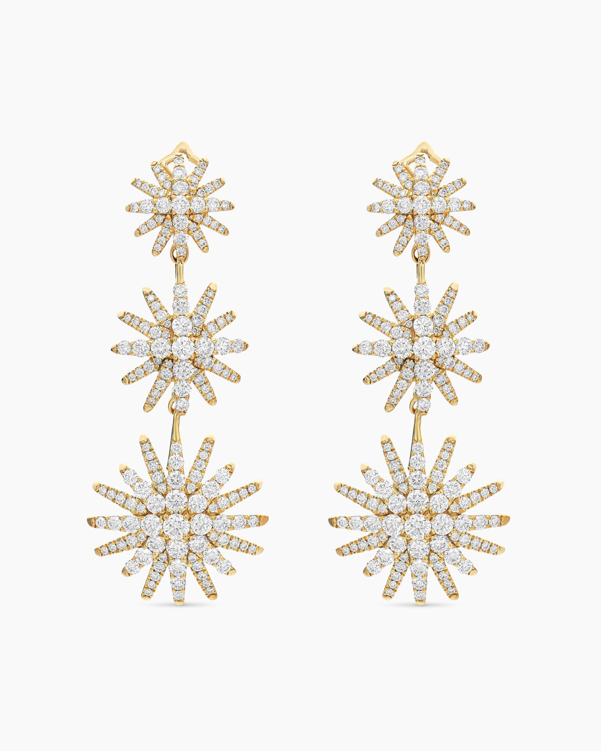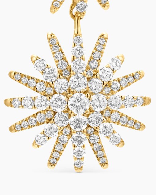 Starburst was born from David and Sybil Yurman’s experience watching fireworks illuminate the Paris night sky. The magical bursts of light greatly moved Sybil, inspiring David to create designs of brilliant star motifs. 18-karat yellow goldPavé diamonds, 4.21 total carat weightEarring drop length, 51mm