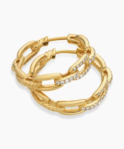 David Yurman Women’s Stax Chain Link Hoop Earrings | Diamond