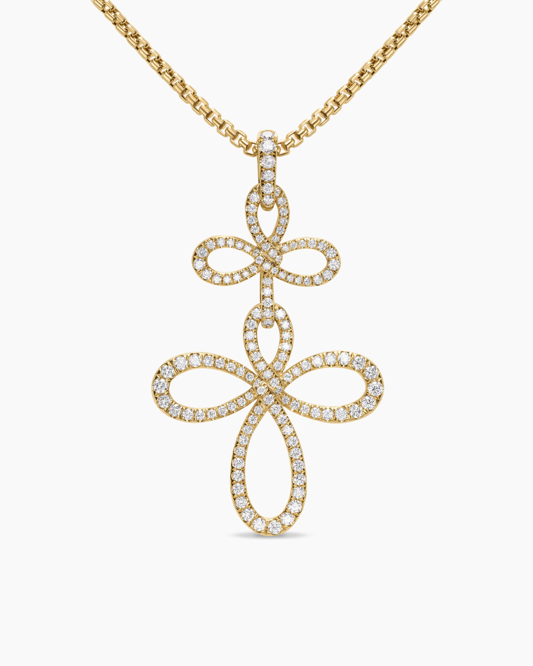 This elegant interpretation of our signature Cable form is inspired by the organic twists of the wisteria vine.18-karat yellow goldPavé-set diamonds, 0.77 total carat weightPendant, 38.2 x 25.3mmChain, 1.25mmFunctioning bailAdjustable length, 16-18in