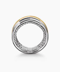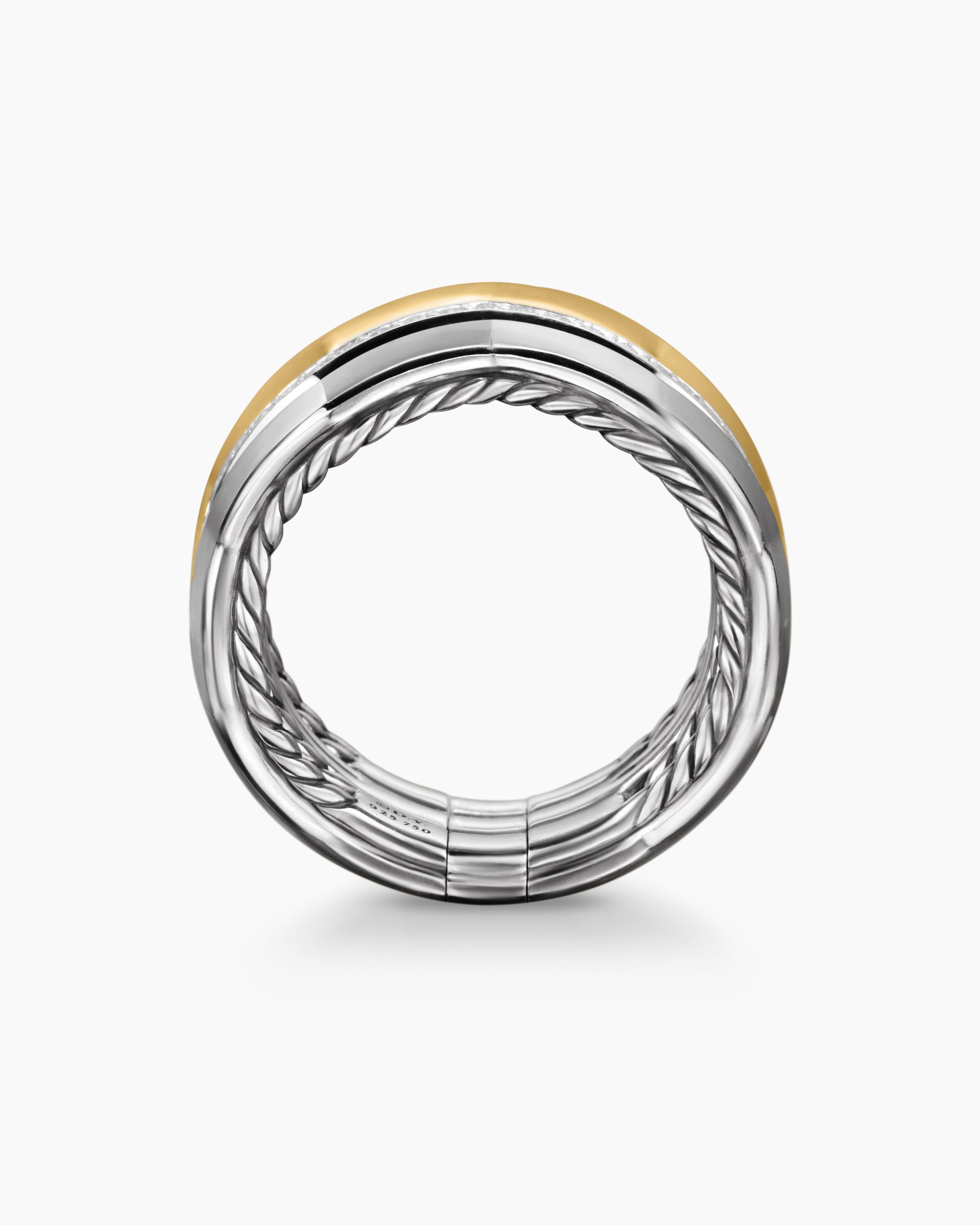 Stax is a contemporary interpretation of elements signature to David Yurman. Combinations of different metal finishes and design motifs define this collection Sterling silver with 18-karat yellow goldPavé-set diamonds, 0.18 total carat weightRing, 11.7mm