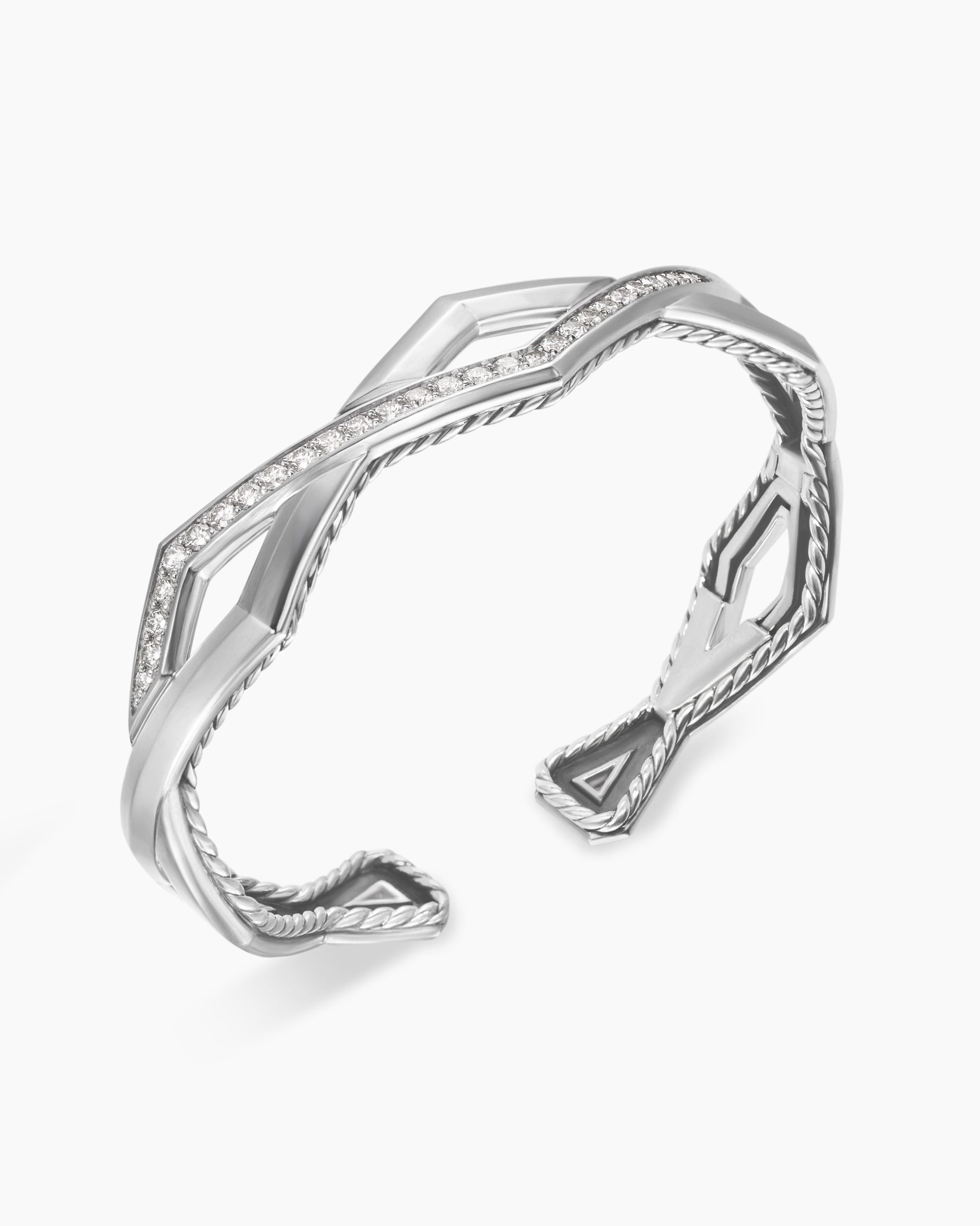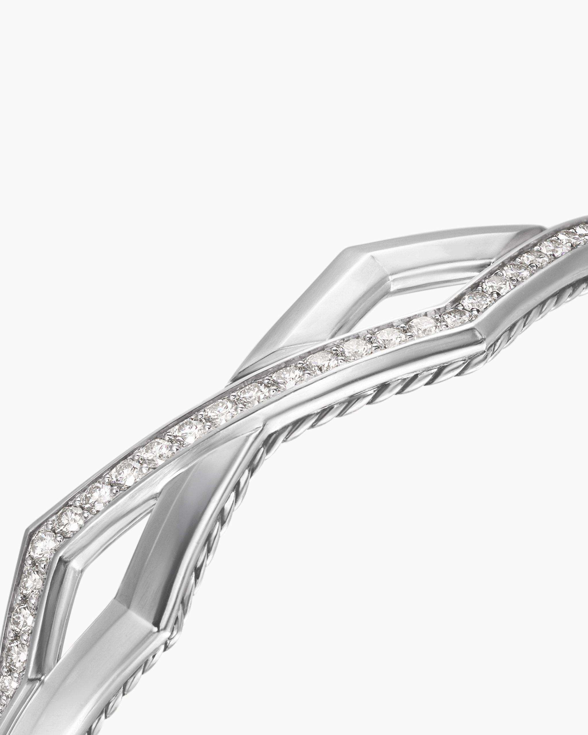 Stax is a contemporary interpretation of elements signature to David Yurman. Combinations of different metal finishes and design motifs define this collection Sterling silverPavé-set diamonds, 1.15 total carat weightBracelet, 13mmHinge opening